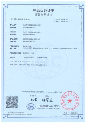 產品認證證書XM
